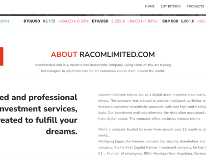 🔍 What Is Racomlimited.com? Racomlimited.com presents itself as an online investment platform offering access to financial markets such as commodities, forex, and other investment products. The website uses professional language...